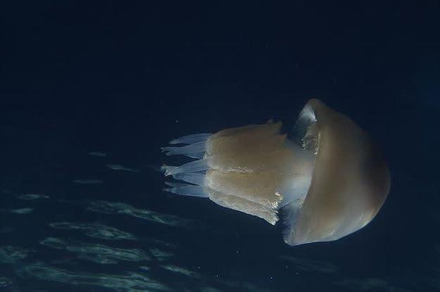 Commonly called "dustbin-lid jellyfish," barrel jellyfish are the largest species of jellyfish in British seas and are typically wash up onto local shores, per CNN.