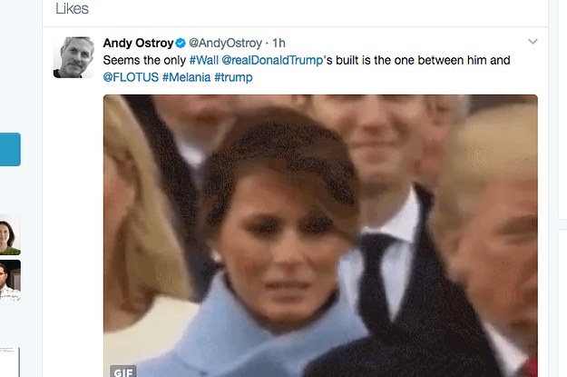 It showed a clip from the inauguration, with Melania smiling as Donald turned around to look at her, and then going angry and stone-faced as soon as he faced front. His caption was, "Seems the only #Wall @realDonaldTrump's built is the one between him and @FLOTUS #Melania #trump."
