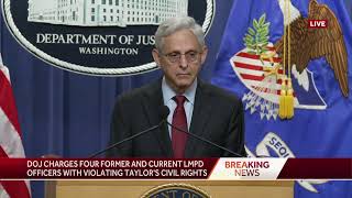 “The federal charges announce today allege that members of the Place Based Investigations unit falsified the affidavit used to obtain the search warrant of Taylor’s home, that this act violated federal civil rights laws, and that those violations resulted in Ms. Taylor’s death,” U.S. Attorney General Merrick Garland said at a press conference on Thursday, as seen above.