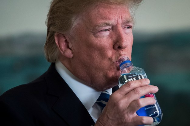 Truly disturbing imagery. The aquatic fuckery occurred during an attempt at publicly stringing words together out loud at the White House Wednesday. At one point, Trump halted this attempt and made a remark about not having water. "They don't have water," he said, remarkably achieving a full sentence that actually made sense. "That's OK." Trump was then informed of a nearby bottle of Fiji water that was unfortunately subjected to his hands and mouth.