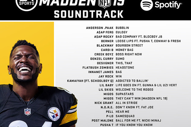Madden NFL 19 is set to arrive on Aug. 10. We already know the cover will be graced by Antonio Brown and seven players received 99 overall ratings. Now, it's finally been revealed what songs we'll be listening to all year on the soundtrack.