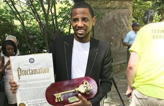 Fabolous received the key to Brooklyn from borough president Eric L. Adams in a ceremony earlier today. The 39-year-old rapper and Brooklyn native was also inducted into the Celebrity Path, located on the grounds of the Brooklyn Botanic Garden.