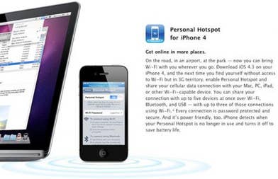 The personal hotspot feature will let costumers use their phone as a mobile modem for their laptops when there is not wireless Internet available. Verizon already offers a similar service to its iPhone users for $5 more.