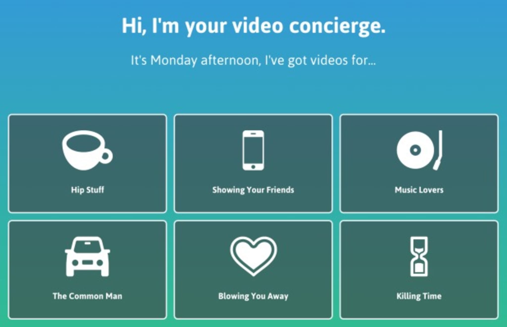5by is a super simple recommendation video app that chooses the best videos based on your mood, and you can also personalize how long you have to watch the videos. Quick video spree while you're bae is talking to her annoying best friend? THIRTY MINUTES.