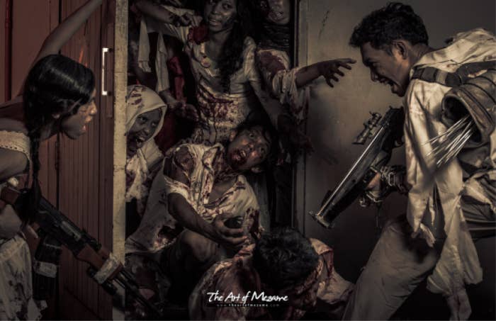 "We were not afraid to have the couple fight each other," Mezame told South China Morning Post, describing how he directed the Star Wars photo shoot. (It had a happy ending.) Mezame uses smoke machines, water guns, pyrotechnics, and lots of photo-editing to make the couples' photos really come to life.