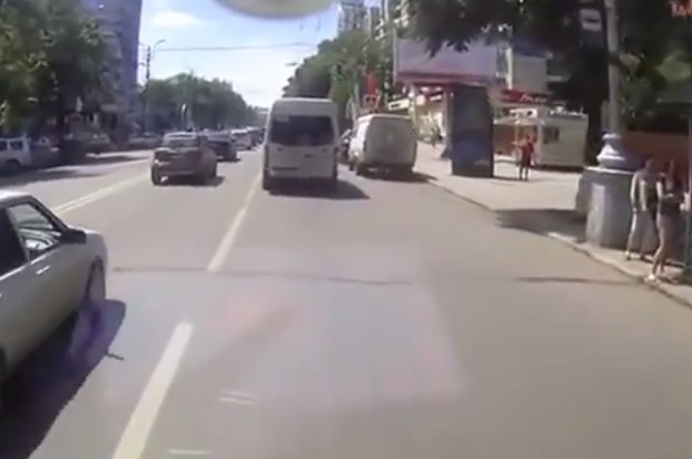 Dashcam footage of a falling crane narrowly missing a pedestrian will make you rethink life.