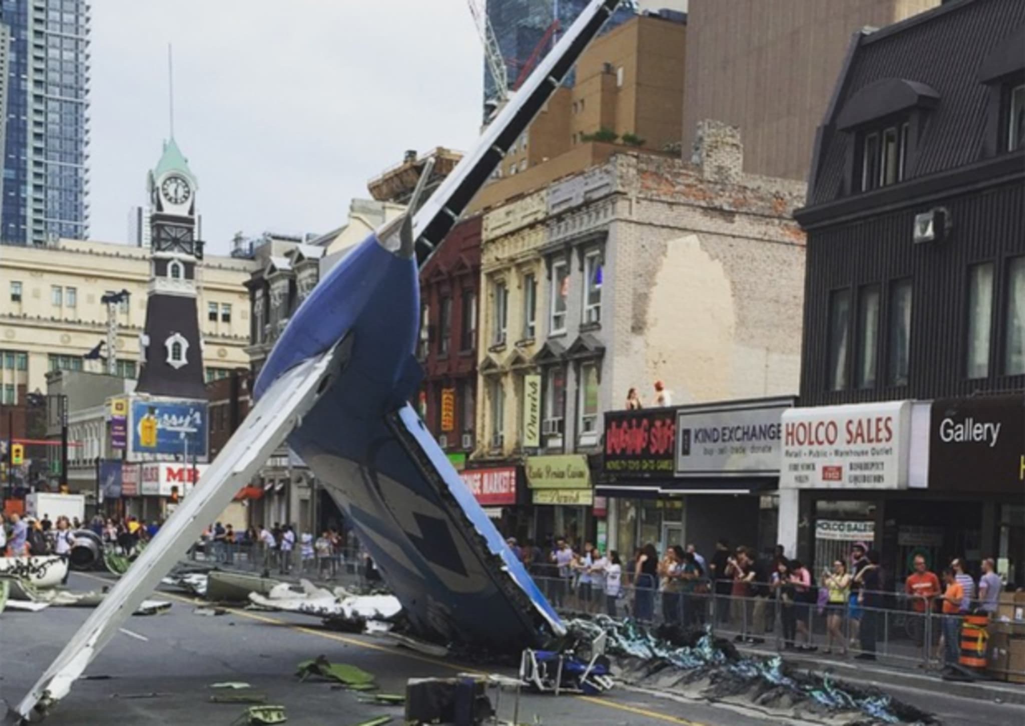 The big-budget DC Comics/Warner Bros. film shut down a section of Yonge Street on Victoria Day to shoot a spoiler heavy plane crash, complete with a severed tail fin, damaged streets and plenty of fake concrete rubble.