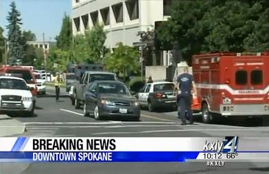 The Associated Press reports that a man traveled to his wife's place of work, Deaconess Medical Center, in downtown Spokane, Wash. this morning and shot her before turning the weapon on himself. According to Spokane police, no one else was injured.
