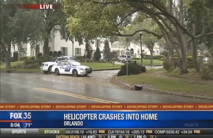 According to the Orlando Sentinel, the helicopter collided with the guest house resting behind the million-dollar home just after 2 p.m. yesterday. Although the specific cause of the crash remains unknown, the Sentinel reports that it had just departed the Orlando Executive Airport. Although people were inside of the home at the time of the crash, police told the Sentinel that no one sustained injuries.