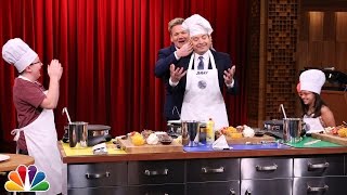 Some people are better off staying far away from the kitchen. Jimmy Fallon is definitely one of those people. During a segment for The Tonight Show, the comedian and two young chefs in the making were tasked with cooking up a crepe using at least three of the presented ingredients. Oh, and their dishes were to be judged by renowned chef, expert reader and savage soul snatcher, Gordon Ramsey. Yeah, that's not intimidating at all.