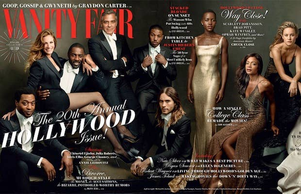 Vanity Fair has just released the cover spread for their upcoming annual Hollywood issue of 2014, and, in a move that should make you go "finally," the image includes six black actors—two of which are before the fold on the actual cover that people see on newsstands. For some context, that's the first time this has happened since...oh, 2007, when Chris Rock made it on the cover. That's seven years.