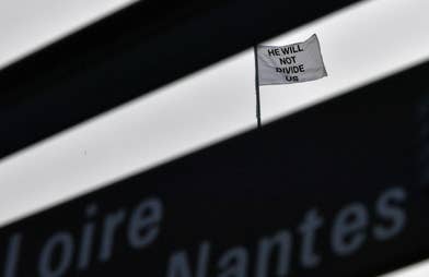 HEWILLNOTDIVIDE.US, a durational project, launched Jan. 20 and originally consisted of a livestreaming camera outside the Museum of the Moving Image in Queens, New York. The museum abandoned the project less than a month later, at which point LaBeouf, Rönkkö & Turner moved the experience multiple times before relaunching from le lieu unique in Nantes, France, where the flag is currently standing tall.