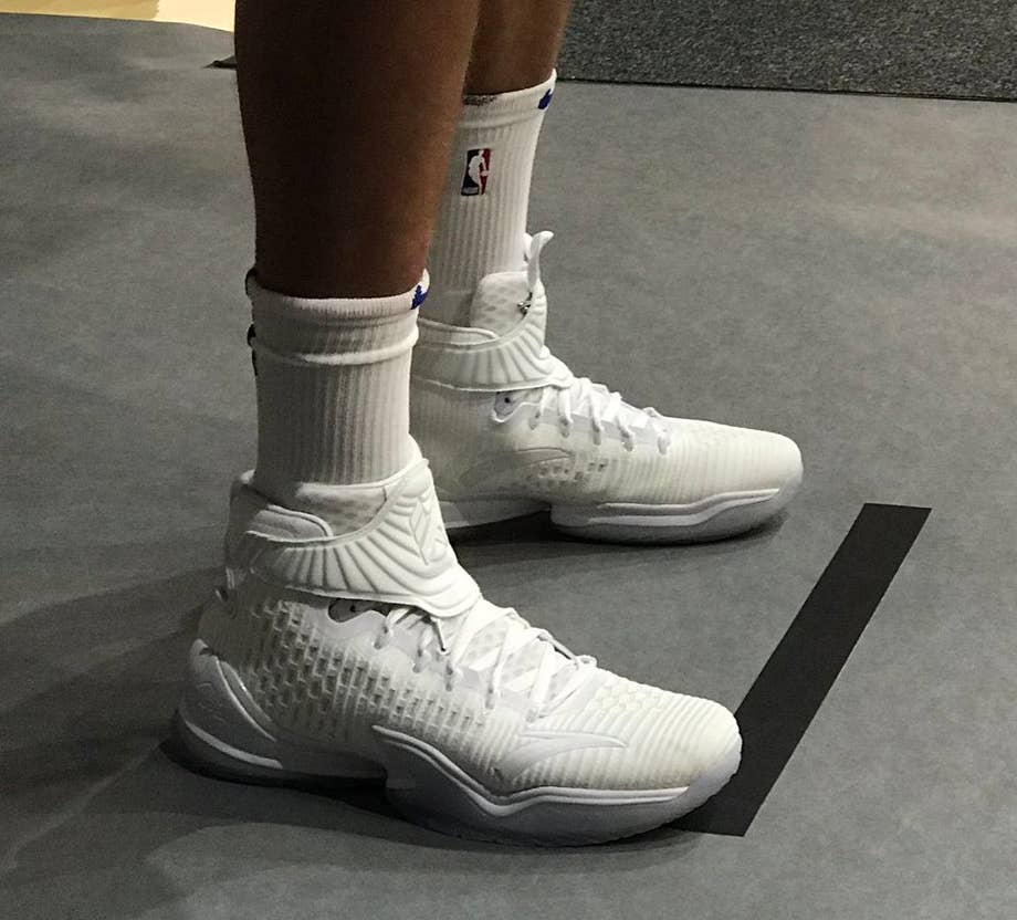 Yesterday, Thompson was spotted at the session wearing his brand new signature sneaker, the ANTA KT3, in a "Triple White" colorway. The model, which will primarily be available in China, features web mesh construction, a 3D ankle cross-strap and anti-roll tech for ankle support.