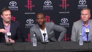 Making the deal that moves him from Los Angeles to Houston official, Chris Paul was introduced as a Rocket during a press conference yesterday.