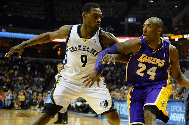 Thought he sat out the game between the Memphis Grizzlies and Los Angeles Lakers at Staples Center, Bryant took some time to meet with Grizzlies guard Tony Allen. During their exchange, Bryant gifted Allen with a signed pair of his personal Nike Kobe 11 sneakers. A closer look at the inscription revealed some high praise for Allen: "To the best defender I ever faced."