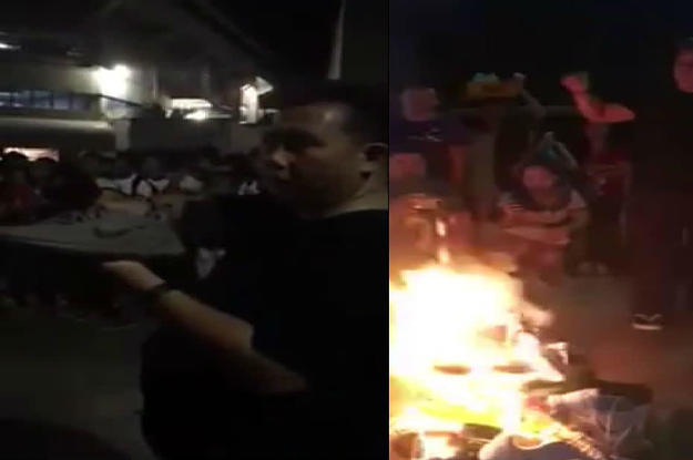 In a video uploaded by a man identified as Oriel Balloon, Pacquiao fans are seen gathering at the parking lot of the Cebu Coliseum in the Philippines. Holding a pair of his own shoes, a man state, “Burn the Nike sole for my soul,” before throwing them on top of a larger pile of Nikes. Another man then pours gasoline on the pole and the shoes are all set on fire.