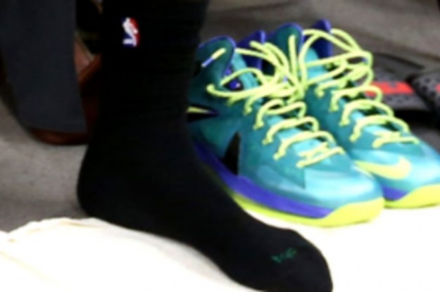 Prior to the Miami Heat's streak-snapping loss to the Chicago Bulls last night, LeBron James was spotted in the visiting locker room seated next to a new colorway of the upcoming Nike LeBron X PS Elite.