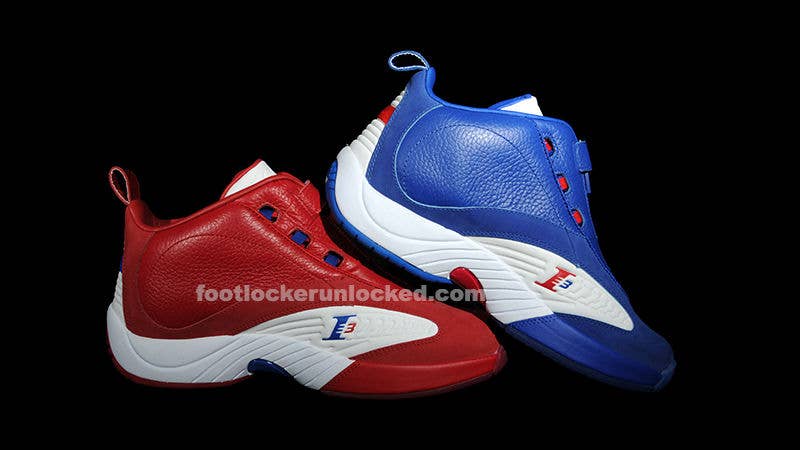 Inspired by the traditional Philadelphia 76ers scheme worn by the team when Allen Iverson arrived in 1996, the pack consists of red and blue-based colorways of the Answer IV, each featuring white on the tongue, "wing," and midsole. Suede and leather construction was used for the uppers, while partially translucent rubber outsoles finish off each style.