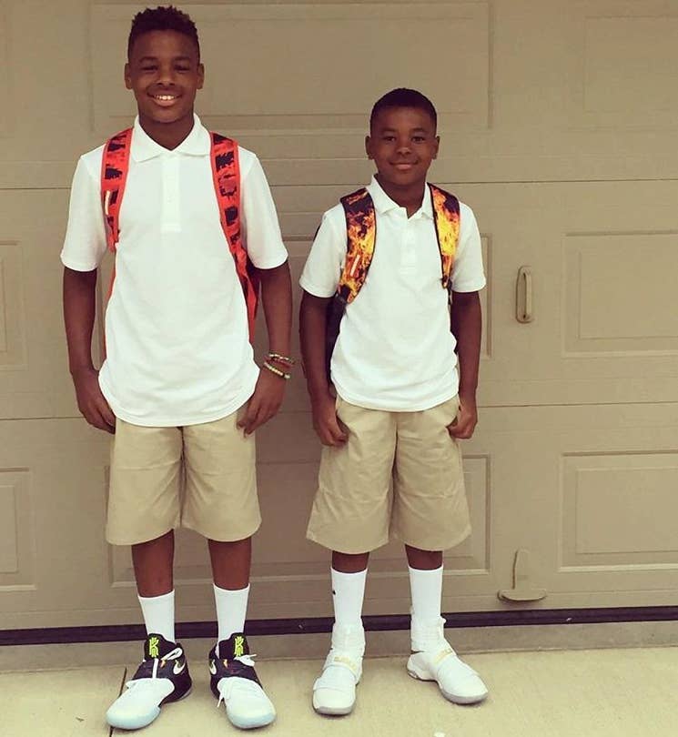 LeBron James is a lifetime Nike athlete, so it's pretty likely that his kids will be wearing Nikes for the rest of their lives as well. On Wednesday, James shared a photo of his two sons headed back to school both clad in Nike Basketball signature models.