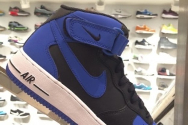 There is no U.S. release date yet for this pair of "Royal" Nike Air Force 1 Mids, but the sneakers are already available overseas at atmos.