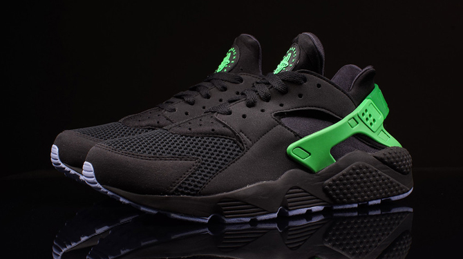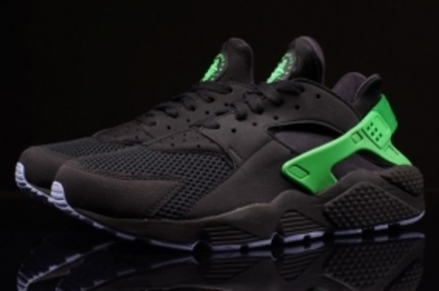Since then the FB suffix has spread to other silos, the Nike Air Huarache among them. This is the latest, a Nike Air Huarache that starts with a black base and works in poison green on the back strap and aluminum on the outsole. FB stands for "football," meaning that the FB releases look to Nike Football designs for inspiration, but as the pairs become more numerous it's more difficult to pin down the connected design on the soccer side.