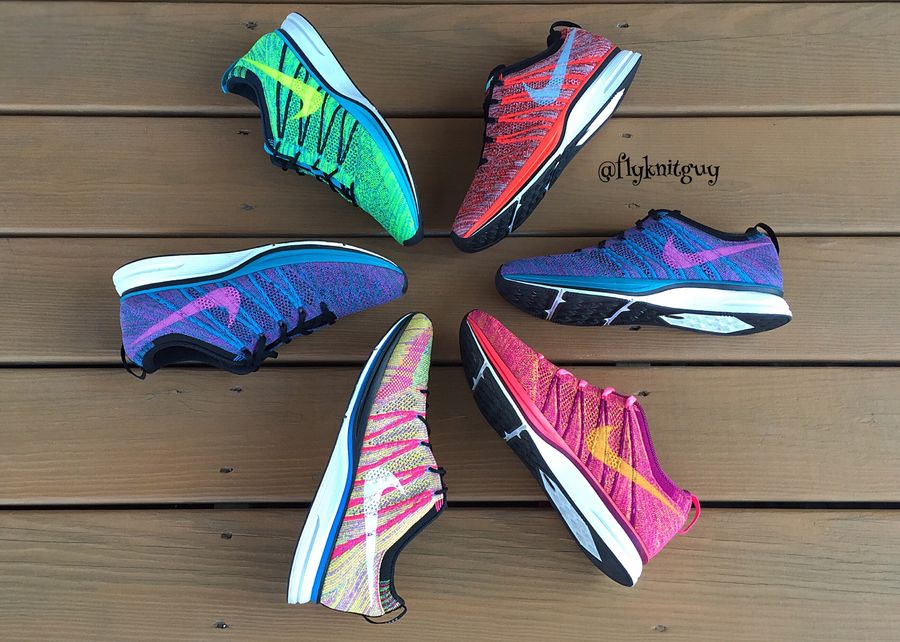 The sneaker made its debut before it was standard for Nike Flyknit pairs from the performance side of things to land on NIKEiD, which means that people had to abide by whatever colorways the Nike team brought to retail. MD177 on NT has access to even more than that though–he's been tracking down unreleased sample versions of the shoe since its release. His impressive horde consists of the six pairs below, which are more colorful than the majority of the retail releases that showed up for this shoe.