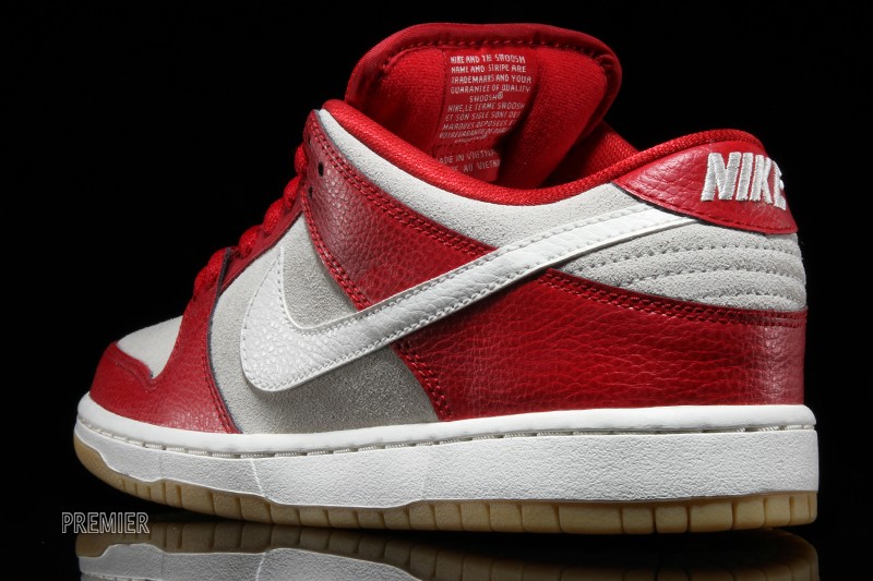 That hasn't stopped certain silhouettes from donning themes tied into that day though. Last year there was the Nike SB Dunk Low "Valentine's Day" with its white/red combination, a look that's reprised here with a similar palette. While Nike has yet to officially unveil the shoe, the Nike SB Dunk Low pair is already available at accounts including Premier. If there were any small detail actually acknowledging the holiday it would be on the insole, but the shot below shows that no such connection is made.