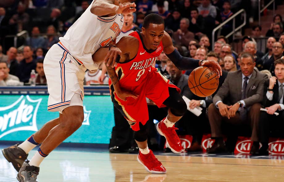 An endorsement deal from a competing sneaker brand is not enough to stop New Orleans Pelicans point guard Rajon Rondo from wearing Air Jordans. He did just that in a Jan. 14 game against the New York Knicks, although he made some effort to not offend his sponsor by covering up the Jumpman logo on his Air Jordan 11s.