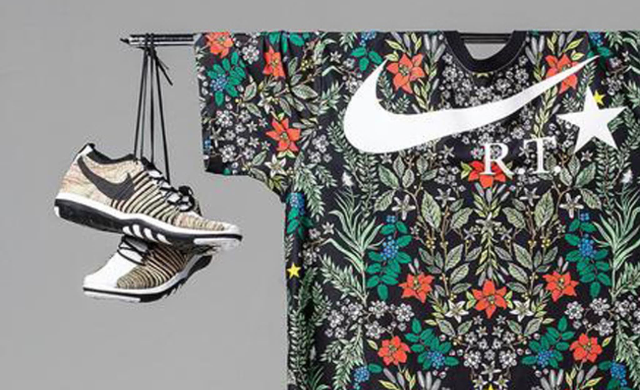 The colorful pair shown is part of the second shipment from this RT x Nike collection, which will land in August. Ahead of that there's a black/white pair coming in July.