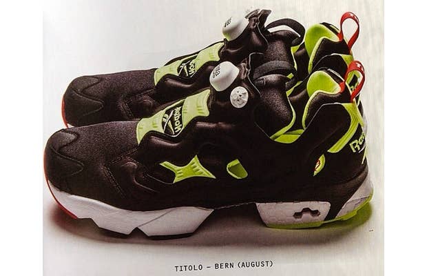 Next up appears to be Switzerland's Titolo—the retailer's first-ever collaboration sneaker. Its Instapump Fury features a black neoprene base with a matching inflatable cage. Lime green accents add a pop of color throughout the sneaker, while its white Hexalite midsole provides a nice contrast.