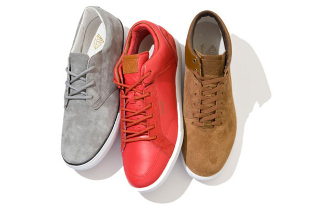 As Nicky Diamonds and company gear towards their initial footwear drop, we have yet another teaser image of what to expect. Here we get a look at Diamond Supply's Lo-Cut, Miner, and VVS models. The kicks put off a casual aesthetic and feature a mixture of suede and leathers. We really dig what we've seen from this bunch thus far and look forward to the fall release.