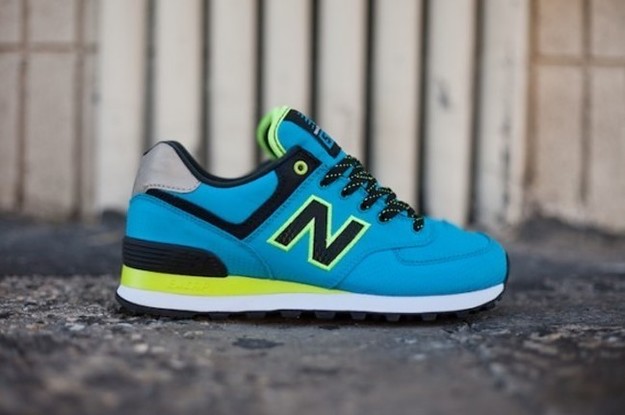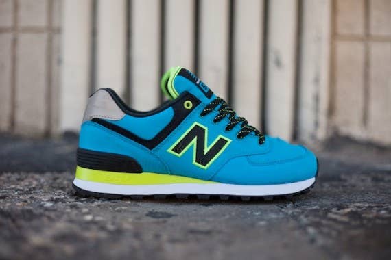 The Windbreaker releases of the 574 from New Balance continue to surface, as here we get a look at a ladies' colorway of the nylon option. The popular silhouette features a bright blue spread, accented with Neon trim as well as Navy detailing. Multicolored laces accompany the low-top set, which you can purchase now through New Balance providers like Feature.