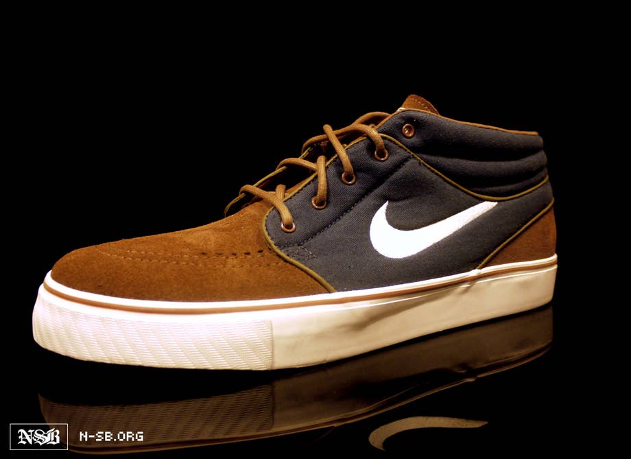 Today we get a look at yet another variation of Nike SB's Zoom Stefan Janoski from its Spring 2012 drop. Featuring a fall-esque colorway, these mids welcome a mixture of tan suede and navy canvas on the upper. Tan waxed laces accompany the two-tone Jans as they are set to release in early 2012.