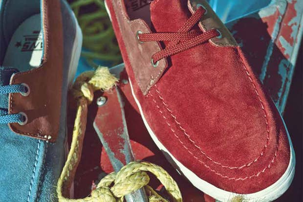 The newly-released Zapato Gore from Vans California has just been let loose in two fall colorways. The deck shoe-style model is optioned in red as well as blue, as each highlights a predominantly suede upper, paired with brown leather detailing at the collar. Tonal laces accompany the duo, while contrasting white midsoles sit underneath. Hit up Vans California dealers today for availability. [via FRESHNGOOD]