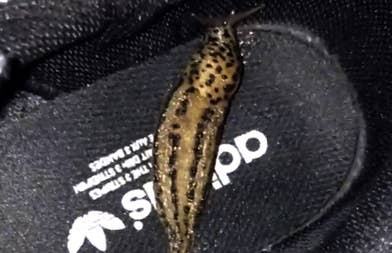 Hikmet Sugoer, owner of Solebox, left his sneakers outside, and a slimy friend made them a new home. Upon returning, Hikmet found the gigantic slug leaving mucus trails all over the insoles of his adidas ZX500 Weaves. Tough luck.