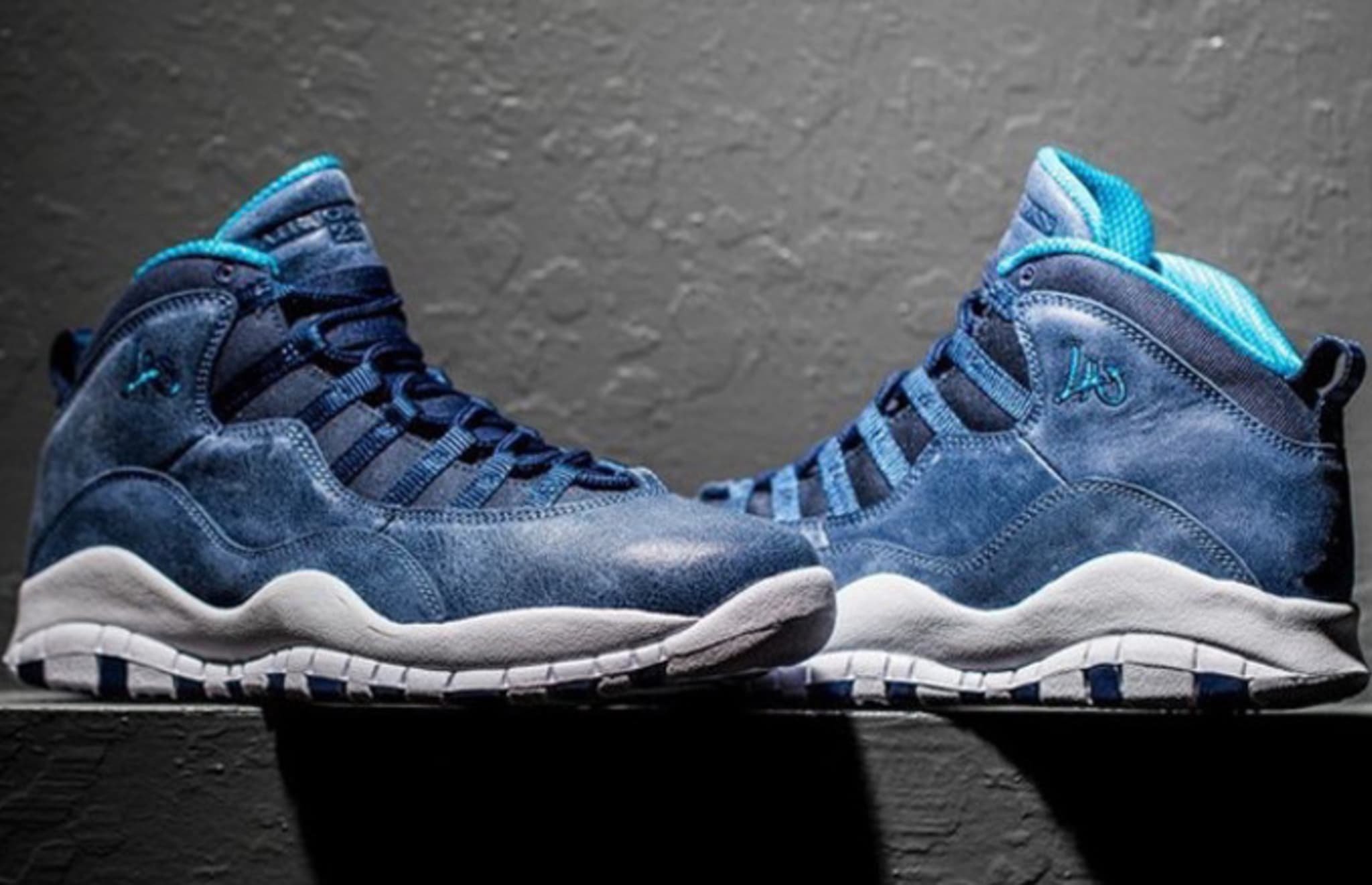 Courtesy of Shoe Palace, fans now have a better look yet at the "LA" Xs. The upper features an "Ocean Fog" distressed leather that gives off an almost denim-like appearance while "Blue Lagoon," utilized in the lining, outsole, and "LA" logo, provides the shoe's main contrasting element. 'Heads have a little bit of time before these release which, as of this moment, is reported to be Saturday, May 14.