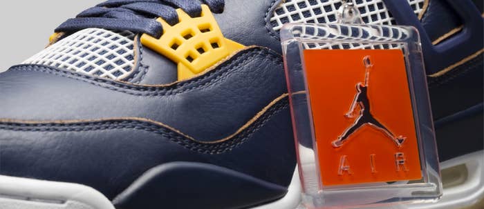 From what we can see thus far, these IVs sport a theme very similar to Marquette University's colors, with a navy leather base, white netting, and yellow eyelets. And being that Marquette is a Jordan sponsored school we wouldn't be surprised that they were the main inspiration behind these.