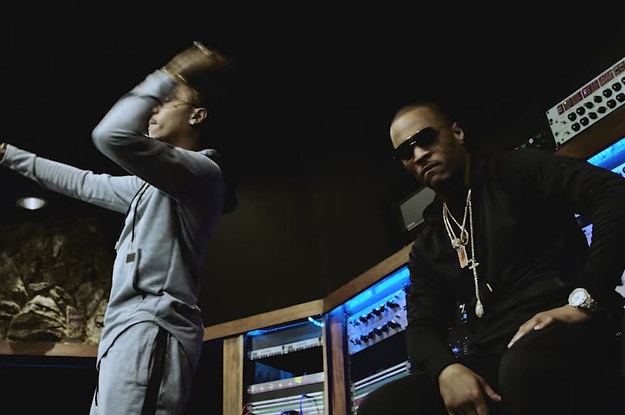 Marshall doesn't actually drop any bars of his own, but in the video, you can watch him clown around with the rappers in the studio.