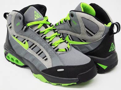The Nike ACG Air Umara is essentially a mid-cut Air Terra Humara (combining elements of different Terra Humara models, actually), or a Terra Humara with the cut of a Terra Sertig. The grey/black/electric green color scheme is true to its '90s ACG roots. You should be able to find them at the usual ACG spots, including Gettry in Japan.