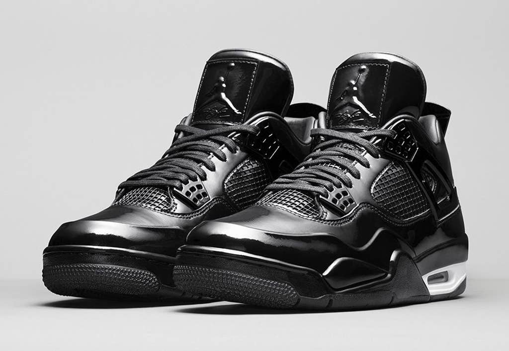 The Air Jordan 11Lab4 takes the classic silhouette of the AJ 4, and covers it in patent leather, an iconic element from the AJ 11. This black and white colorway is the first pair set to drop. They feature an all-black patent leather upper with white wrapping around the heel of the midsole as well as on the Jumpman logos on the insoles. The fourth model from the 'Lab' series, this one comes in at the highest price point yet, $250.