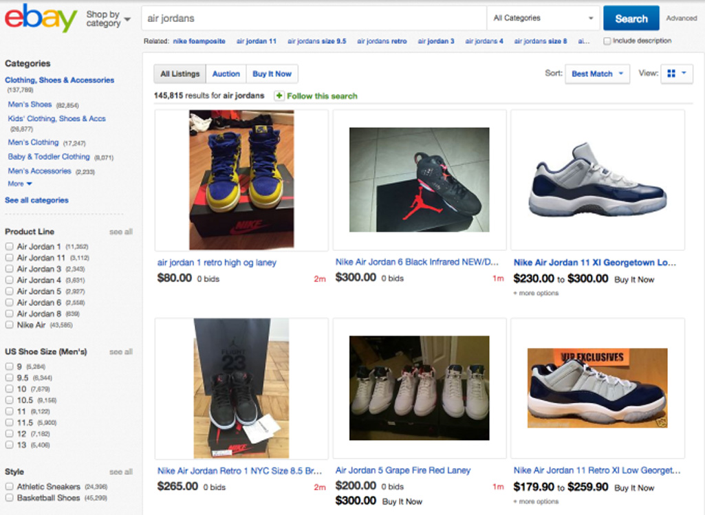 While the majority of people use eBay to re-sell sneakers for over retail, the consistent price increases, as well as people looking to make a quick buck flood the market from time-to-time. Miss out on a general release? Check eBay. If prices aren't up to par in the first few days, check back over a few weeks. If people need to move things fast, you can luck out.