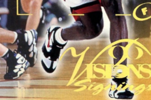 The second shoe spotted on this card is the Nike Air Max Uptempo 2, worn by an unidentified Michigan player. The Uptempo 2 was one of the first basketball shoes to utilize the Air Max 2 technology, an updated version of Air Max. For whatever reason, the Uptempo 2 was never worn much by NBA players, so it is one of the Nike basketball shoes more closely associated with college ball than the NBA. It was made popular by schools like Duke and Michigan's Fab Five. Even its most popular colorway (Black/White/Blue, seen here) is nicknamed "Duke" for, of course, the Duke Blue Devils.