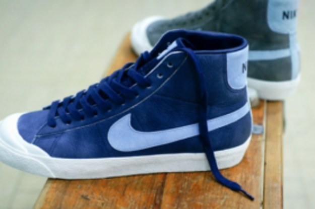 Combining design elements from both the classic Nike Blazer and All-Court, Size receives two exclusive colorways of the Blazer AC built up with high quality premium leathers. First seen is a navy blue based colorway, commpimented by hits of light blue and white throughout. The second look provides more of a natural tone, displaying a simple combination of grey, light blue and white.