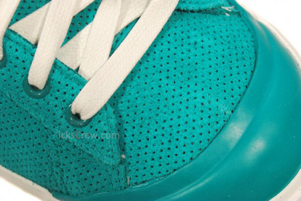 The classic silhouette dons a fresh spring color scheme, displaying an eye-catching combination of aqua and white. Lush teal perforated suede builds the entire upper, while khaki accents on the suede heel badge and liner. White takes care of the contrasting laces and tradtional vulcanized sole sitting down below.