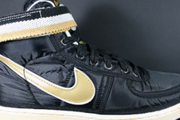 Bringing back the basketball classic, Nike Sportswear built up the Vandal Supreme with a worn-in nylon upper and a vintage-finished outsole holding things down below. Black handles the entire nylon upper, while metallic gold accents on the Swoosh, ankle strap, tongue branding and heel badge.