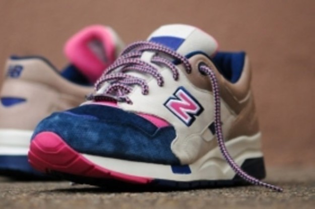 The Ronnie Fieg x New Balance “Daytona” 1600 comes blocked with three micro-perforated leathers. The heel consists of a tan luggage leather, the saddle is a 1H brushed off white nubuck, and finishing off the shoe is a bolded navy oily pigskin. Matching navy accents are seen on the branded heel, “N” side panel patch, and on the midsole and sockliner that come together perfectly. Pink accents finish off the set of co-branded lace locks on the front, the same “N” side panel patch, on detailed sections of the toebox and under the tongue. An ABZORB cushioned midsole adds high profile shock absorption for comfort to each pair.