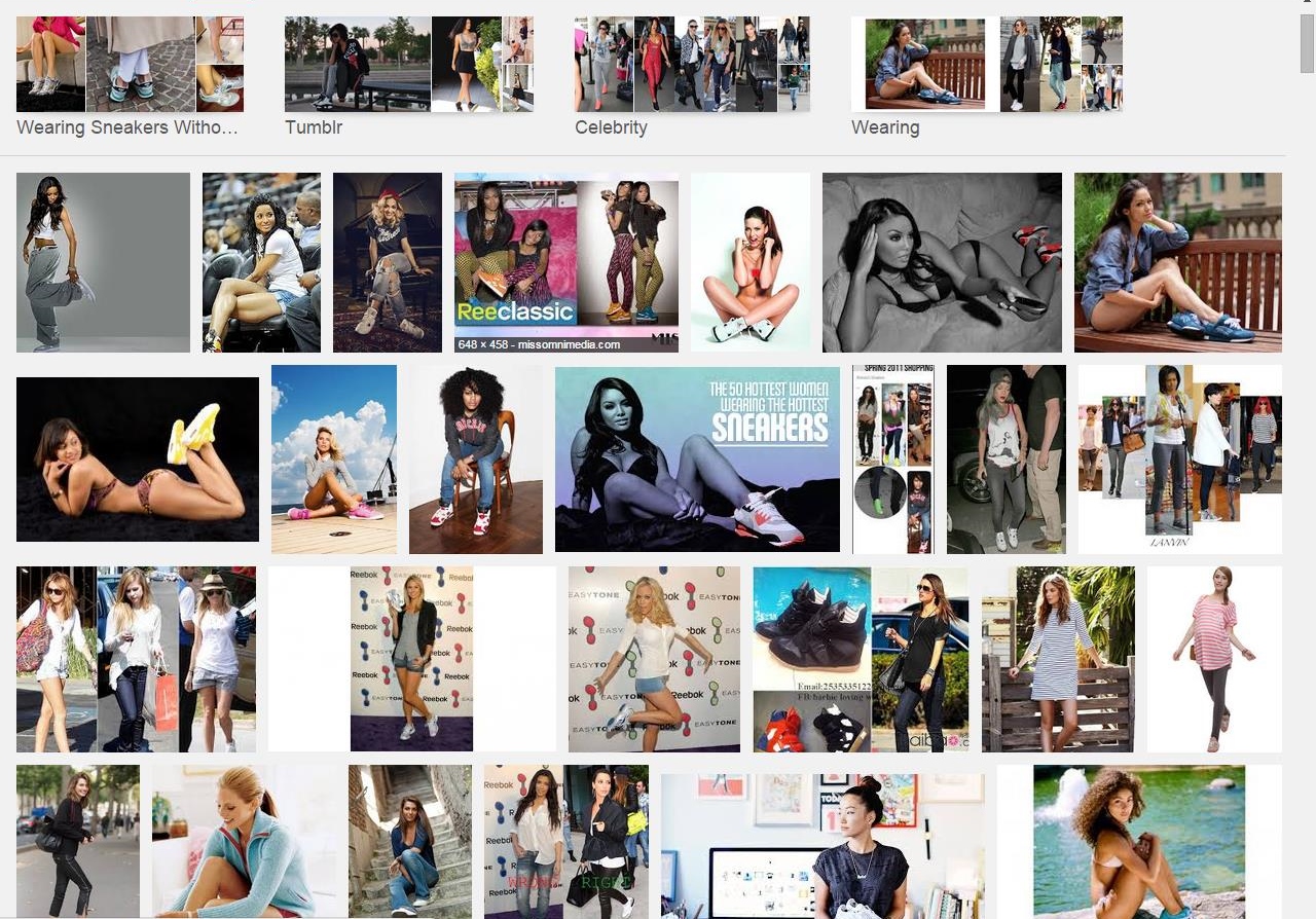 Just Google “men in sneakers” and “women in sneakers” and see what comes up. As you can see from the images below, the results are quite different.