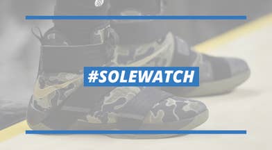 James began the game in the SFG "Camo" edition of the Soldier 10 in honor of "Hoops for Troops" night being celebrated at the Quicken Loans Arena. But following a slow first half in which he scored a mere two points, James switch out to a new pair—something we've seen before from him following a sub-par half.