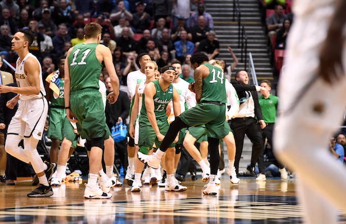 Jon Elmore hit four threes and scored 27 points to lead Marshall. With the few upsets that have already occurred in the first two days of the NCAA Tournament, many have found their brackets are already pretty busted.