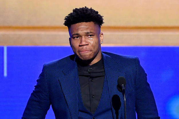In a shockingly poignant speech, Antetokounmpo couldn’t keep it together as he thanked his family—including his late father—friends, teammates, the Bucks, and all his supporters in an unprepared speech that sent chills through the crowd and produced all the feels. The 7’ giant, who looks like he’s carved out of stone and physically overwhelms everyone in his presence, was finally overwhelmed himself.